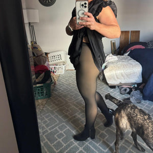 “So cozy! They look sleek and sheer on the outside, but the inside is super soft and keeps my legs really warm. They’re comfy, stretch well, and don’t tear easily."